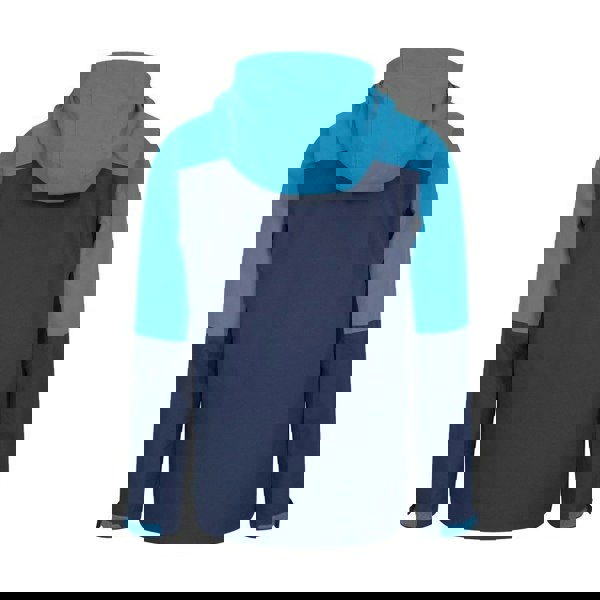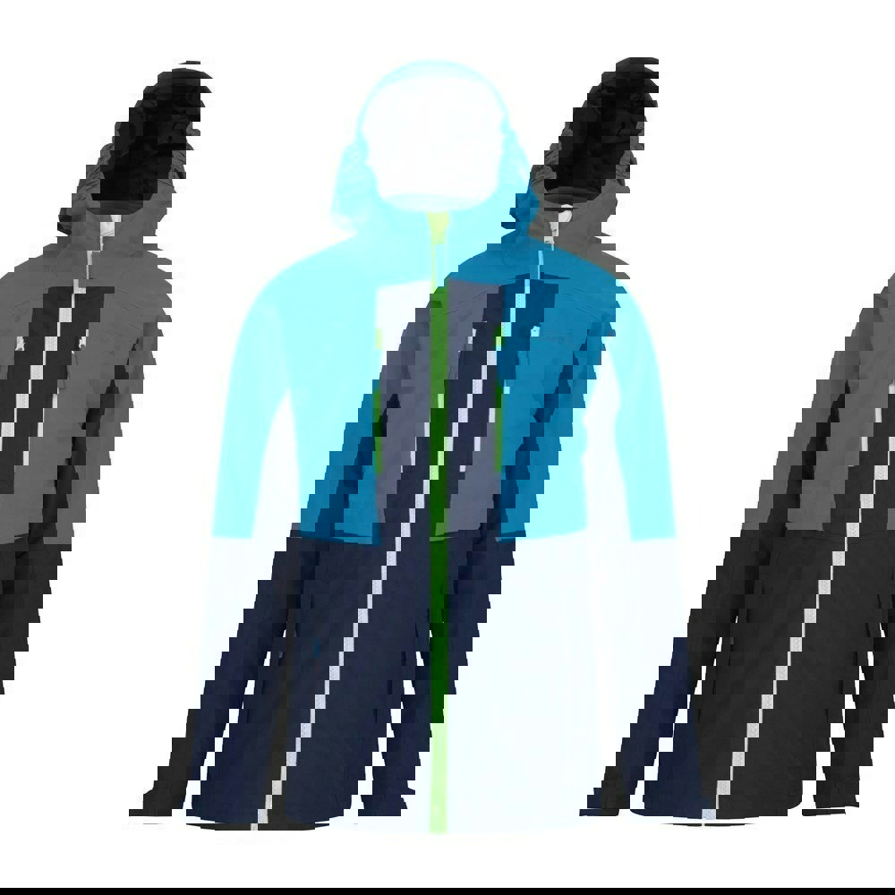 This children’s Ravine 3 in 1 waterproof jacket from Mountain Warehouse comes in blue with a colour block design and logo detail. Made from 96% polyester and 4% elastane, it includes an inner softshell jacket for a layered 3 in 1 construction. The outer has taped seams and a hooded neckline with a detachable hood.