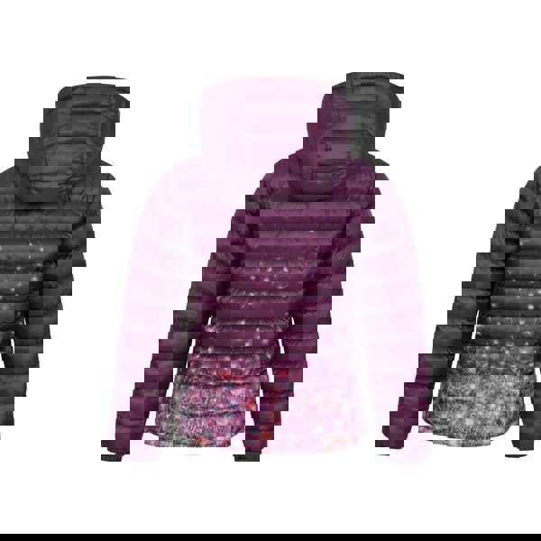 This children’s padded jacket comes in purple with a dandelions design. Made from 100% polyester with insulated microfibre filling, it has a lightweight feel and a DWR finish. The fabric technology includes heat retention and water resistance.
