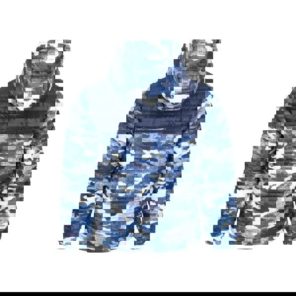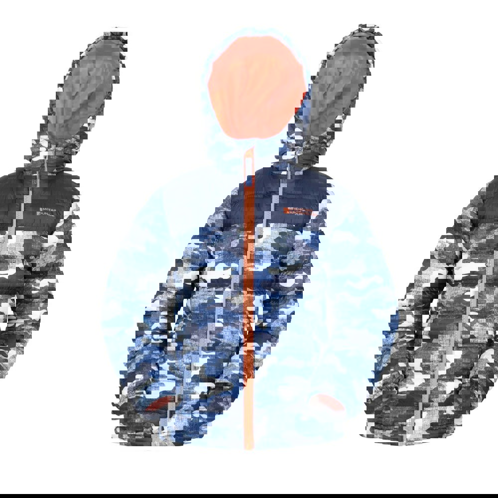 This children’s Seasons printed padded jacket from Mountain Warehouse is made from microfibre and finished in an orange all-over camo print with contrast detailing and a logo. A grown-on hood and long sleeves create a covered silhouette, while the lightweight construction keeps the profile streamlined.