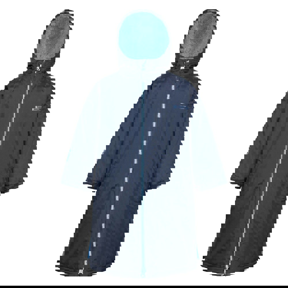 The Mountain Warehouse Children’s Tidal Waterproof Robe in navy is made from 100% polyamide with a soft-touch fabric finish. Isotherm fabric technology combines waterproof and windproof performance, supported by taped seams and a 1500mm waterproof rating.
