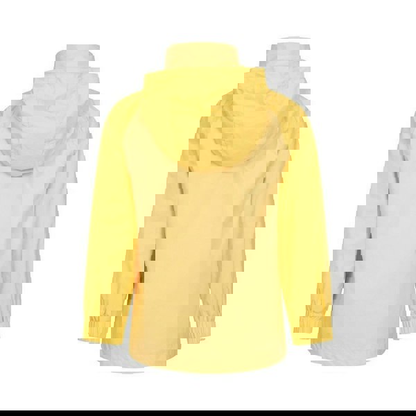 The Mountain Warehouse Torrent II waterproof jacket for children comes in pale yellow with a colour block design and logo detail. Made with a ripstop outer in 100% nylon and a mesh lining in 100% polyester, it is breathable and lightweight, with a waterproof rating of 2000mm and 2000gsm fabric weight.