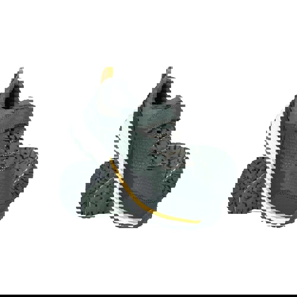 These children’s Wilderness walking shoes from Mountain Warehouse come in dark khaki with a low-cut profile and a flat sole. The upper combines PU (polyurethane), synthetic and textile materials, paired with a mesh and textile lining. A cushioned insole and EVA footbed add underfoot padding, while the synthetic outsole is finished with a rubber heel and a rubber toe bumper.