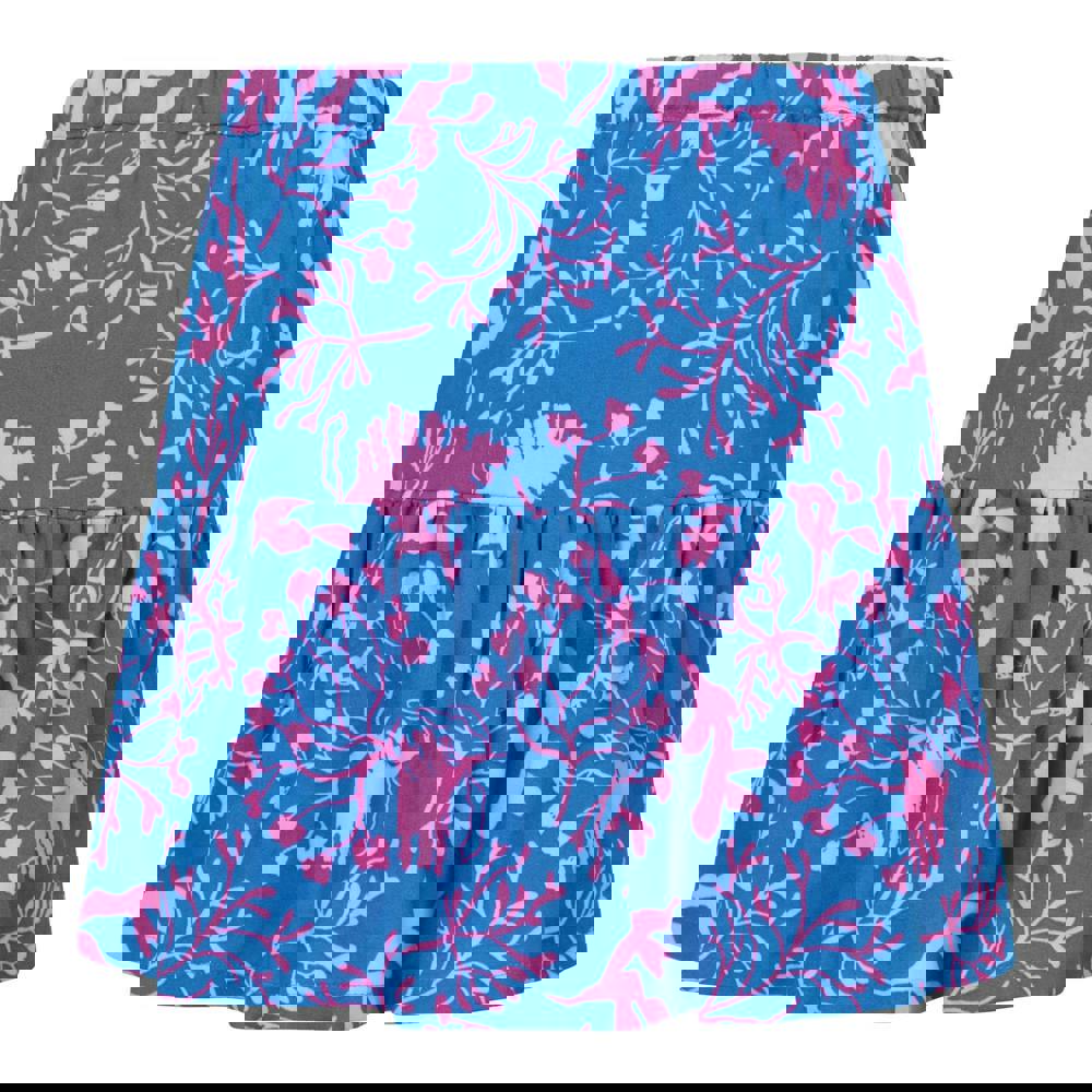 This girls’ skort comes in blue with a leaf print and a soft-touch finish. Made from viscose, it uses a lightweight fabric technology and includes a jersey lining. An elasticated waistline provides a secure, easy pull-on fit.