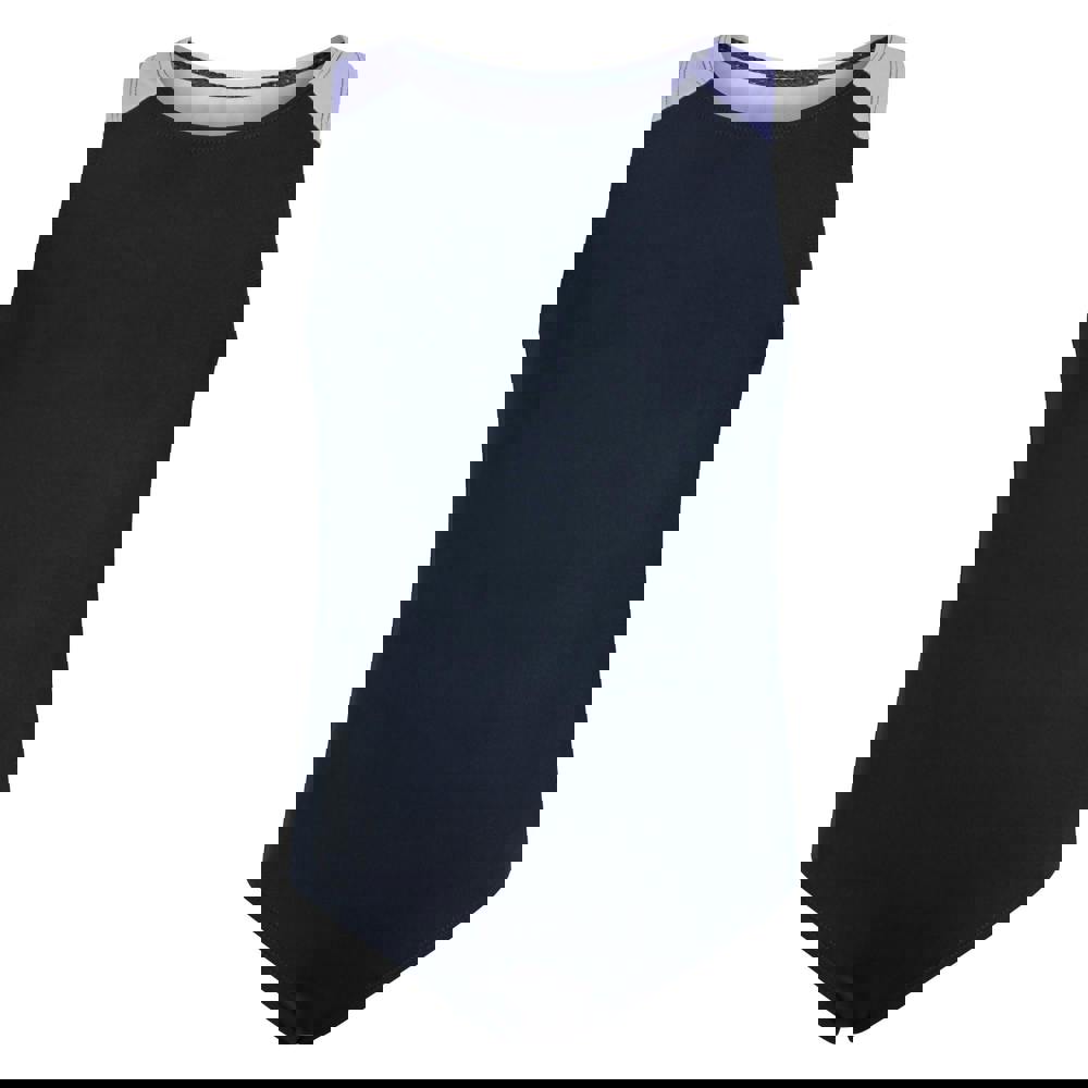 This girls’ sporty one piece swimsuit comes in navy with a colour block design and a round neckline. Made from a stretch fabric blend of 83% polyester and 17% elastane, it has a pull-on fastening for a simple, streamlined finish. The fabric technology is flexible and lightweight, and the swimsuit is lined in 100% polyester.