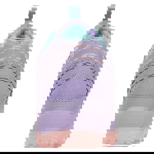 These kids’ approach running trainers from Mountain Warehouse combine a mesh, synthetic and textile upper with a mesh and textile lining. A moulded EVA insole sits above a Phylon midsole, while the outsole uses a high traction grip with textile construction. The low-cut profile and flat heel create a streamlined shape, finished with a round toe.
