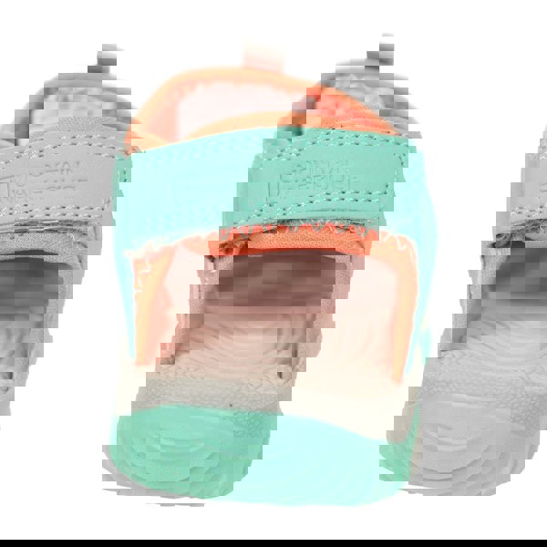 Mountain Warehouse Kids Bay Sandals in turquoise with contrast detail and a round toe. A flat heel and touch fastening keep the profile simple, while the adjustable multi-strap construction secures the fit. Inside, a neoprene lining sits alongside a cushioned insole, supported by a foam midsole. Underfoot, the durable rubber outsole completes the build.
