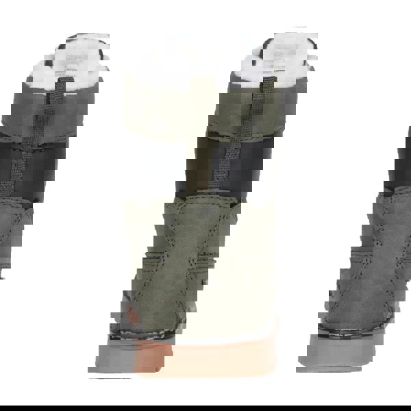 These kids’ casual boots from Mountain Warehouse come in khaki green with contrast detail and an ankle cut. The upper is synthetic and the lining is borg, with an insulating, soft feel. A round toe and low block heel complete the shape, while lace-up fastening runs through five eyelets.