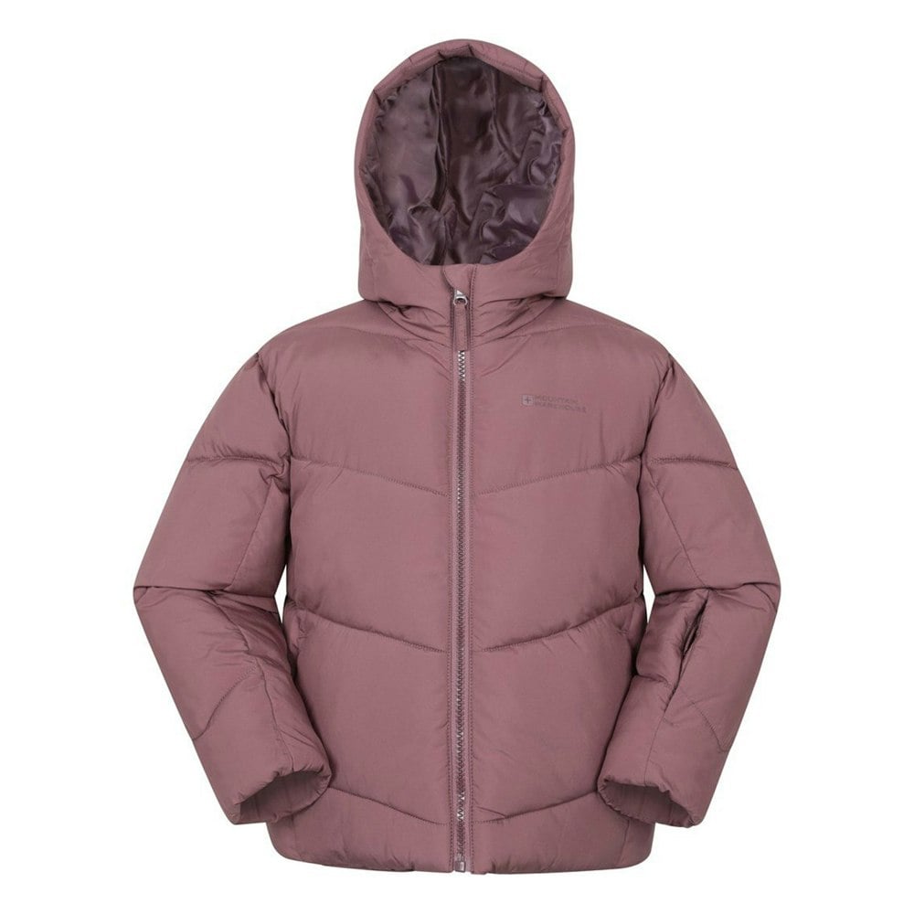 This kids’ Cortina ski jacket from Mountain Warehouse comes in dark pink with a logo design. Made from 100% polyester with a microfleece lining, it has a lightweight, water resistant fabric and a padded, insulating build.