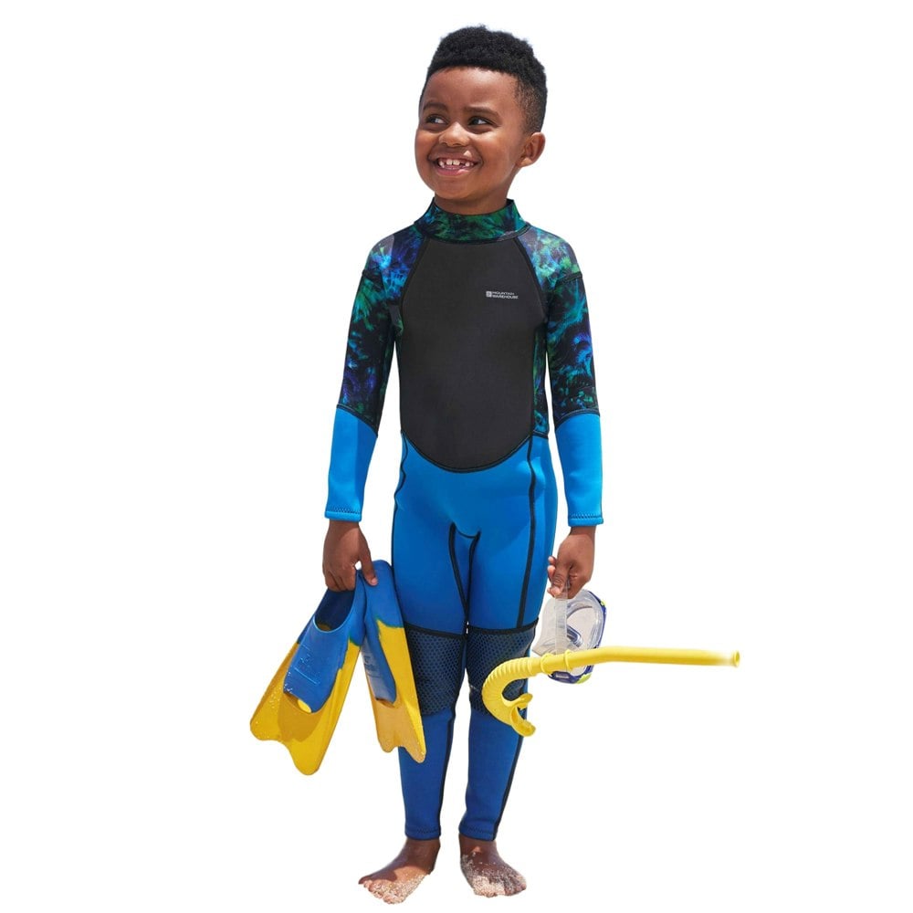 Mountain Warehouse Kids Electro Pulse Full Wetsuit in bright green with contrast detailing and logo. Made from 100% polyester with bonded neoprene fabric and a lightweight, flexible construction. Flat seams and a sculpting shape support unrestricted movement. A high-neck design with an adjustable neckline sits alongside a back zip and pull-on fastening. Finished with a small key pocket and quick-dry fabric technology with heat retention.