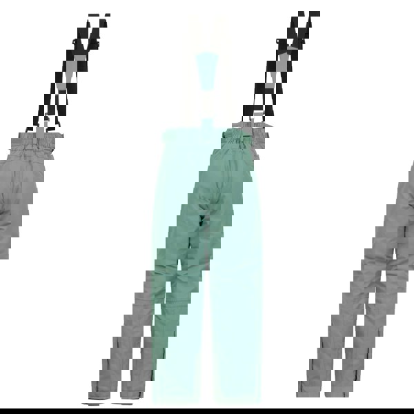 The waistband is elasticated and the trousers fasten with a stud and zip fly. Practical details include detachable braces, reinforced knees and scuff guards, plus snow gaiters and taped seams. A logo completes the design, and the fabric technology is waterproof.