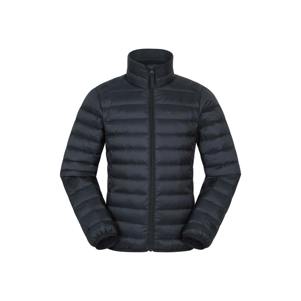 This kids’ featherweight down jacket comes in jet black with a quilted finish and logo detail. It uses a down and feather filling with 600 feather power fill, paired with a downproof lining. Water resistant fabric technology and a standing collar complete the outer.