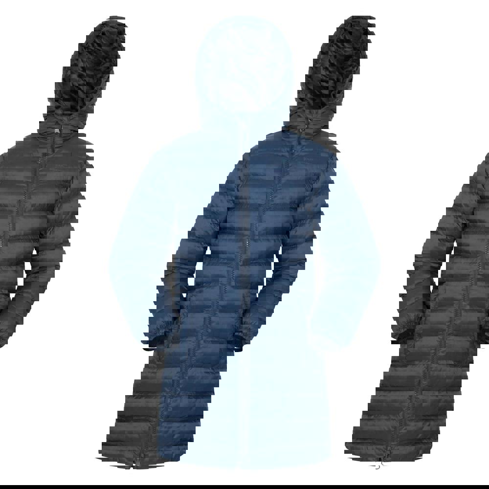 This kids’ Florence longline padded jacket from Mountain Warehouse comes in navy with a quilted finish and logo detail. The outer is made from 100% nylon with a microfibre filling and a soft-touch fabric feel. A grown-on hood and long sleeves provide coverage, while elasticated cuffs give a secure finish.