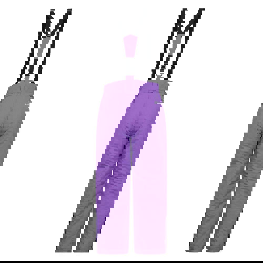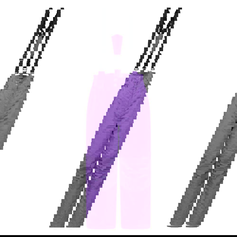 These kids’ Honey ski trousers from Mountain Warehouse come in Fusion Purple with a logo detail. Made from 100% polyester, they use a double-layer fabric construction and a DWR finish. The design includes adjustable, detachable braces and belt loops, with a part-elasticated waistline for a secure fit.