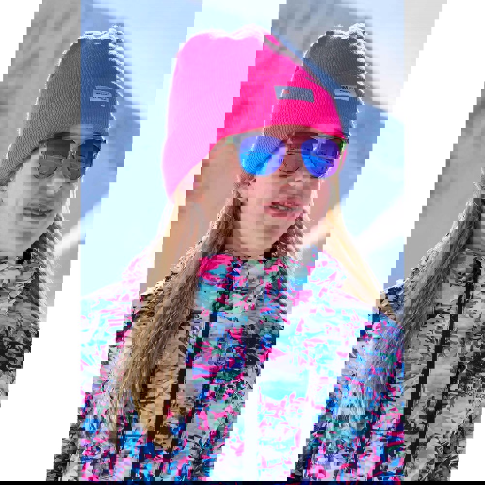 This kids’ beanie from Mountain Warehouse comes in bright pink with a knitted, soft-touch fabric and a turned-up cuff. A woven label adds a simple branded detail, while the 3M Thinsulate lining provides an extra layer inside the hat.
