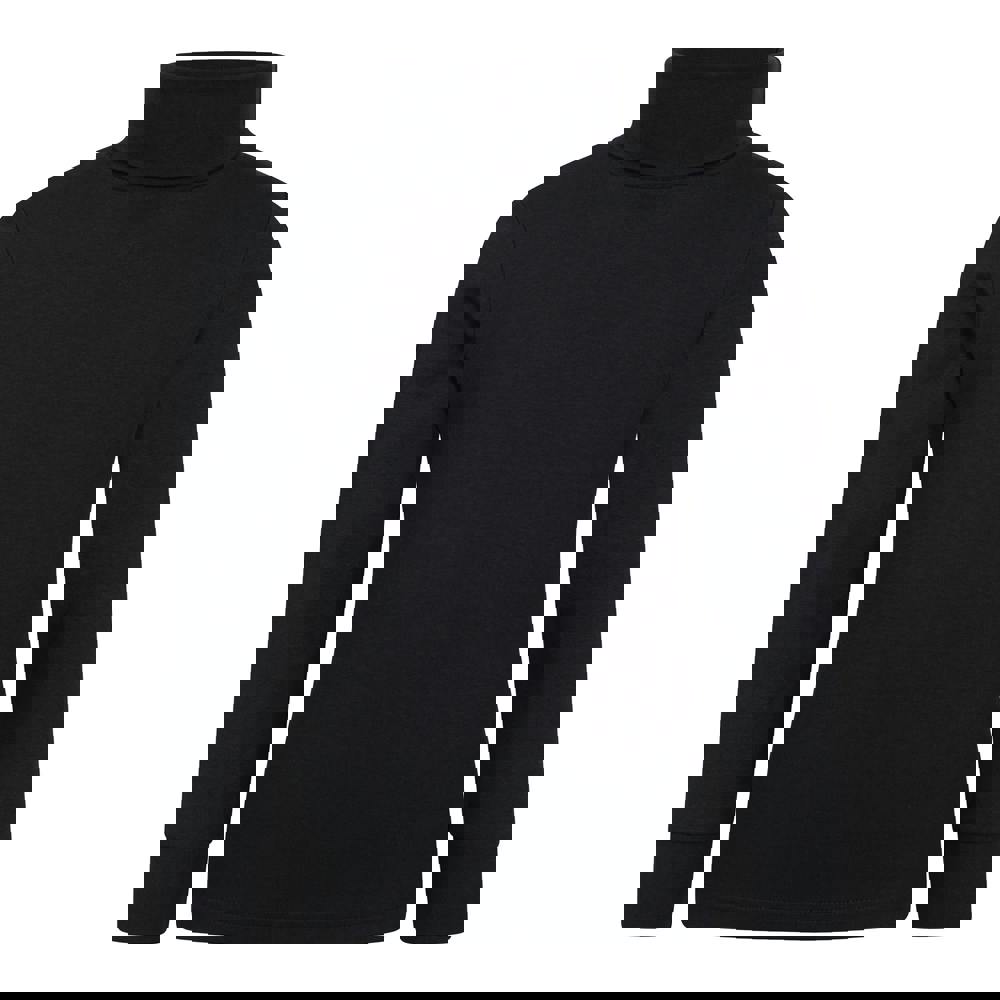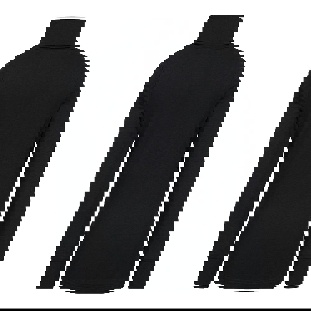 This kids’ Meribel roll neck top from Mountain Warehouse is made from 100% cotton in a plain black finish. It has long sleeves with fitted cuffs and a roll neckline for a clean, simple look that works well for everyday wear and layering.