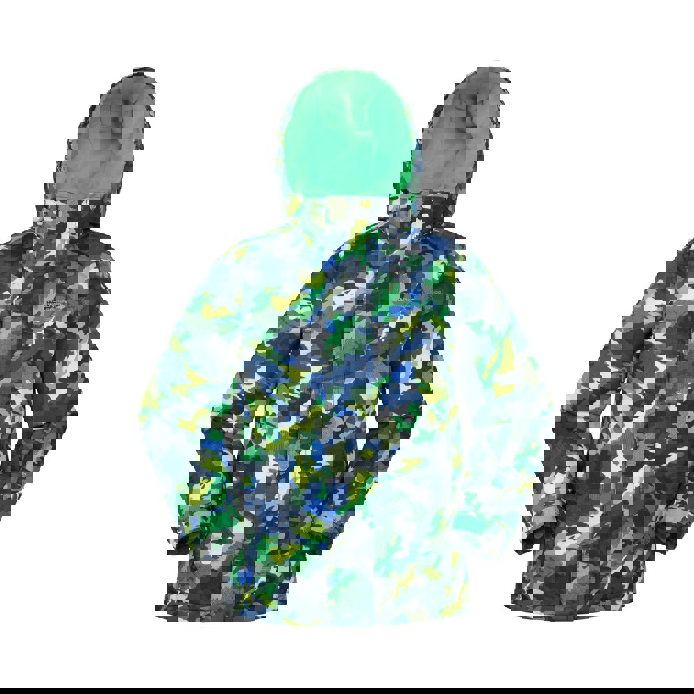 Made from 100% polyester, this kids’ ski jacket comes in bright green with an all-over geometric logo print. The fabric has a DWR finish and is snowproof and water resistant. A hooded neckline and long sleeves create full coverage, while adjustable cuffs with touch fastening tabs allow a secure fit at the wrist.