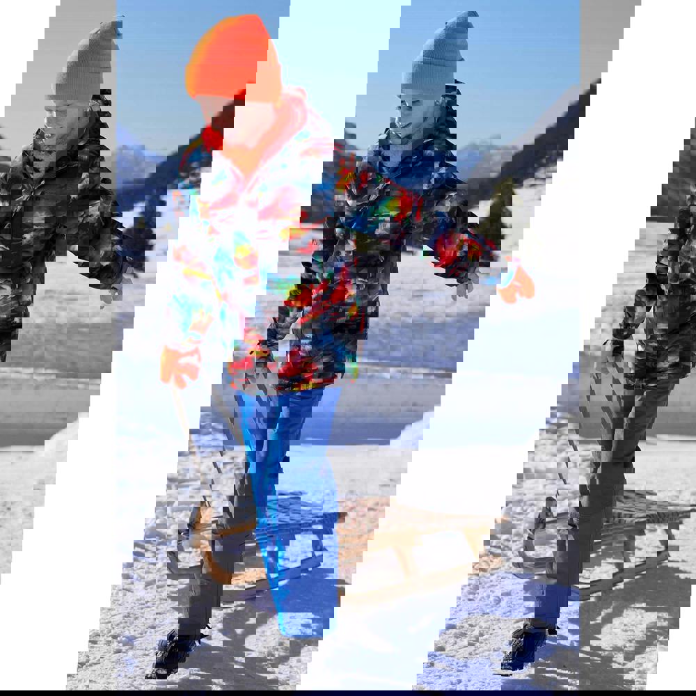 This kids’ Mogal ski jacket from Mountain Warehouse comes in red with an all-over geometric and logo print. Made from 100% polyester, it has a DWR finish with snowproof and water resistant fabric technology. A hooded neckline and long sleeves provide coverage, while adjustable cuffs with touch fastening tabs allow a secure fit at the wrists.