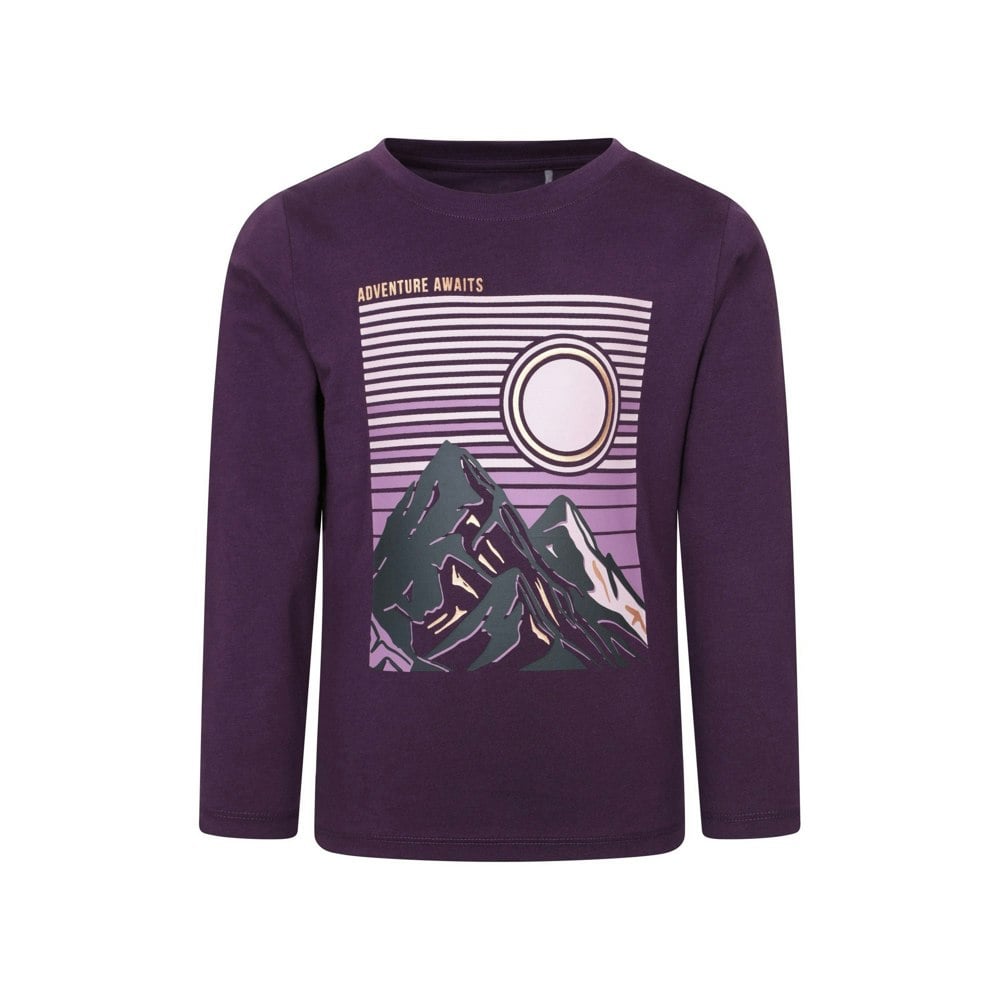 This kids’ Mountain Warehouse T-shirt comes in a purple print with a logo printed design. Made from 100% cotton, it has a lightweight, breathable feel and a classic crew neckline. Short sleeves keep the look simple and practical, while a printed back neck label provides a clean finish.