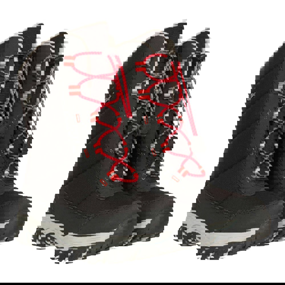 These kids’ Ohio snow boots from Mountain Warehouse come in black with contrast detail and a faux fur trim. The upper and lining are textile, with a synthetic TPR outsole made for durability and high traction. A round toe and flat sole keep the shape simple, while the mid-calf cut offers added coverage.