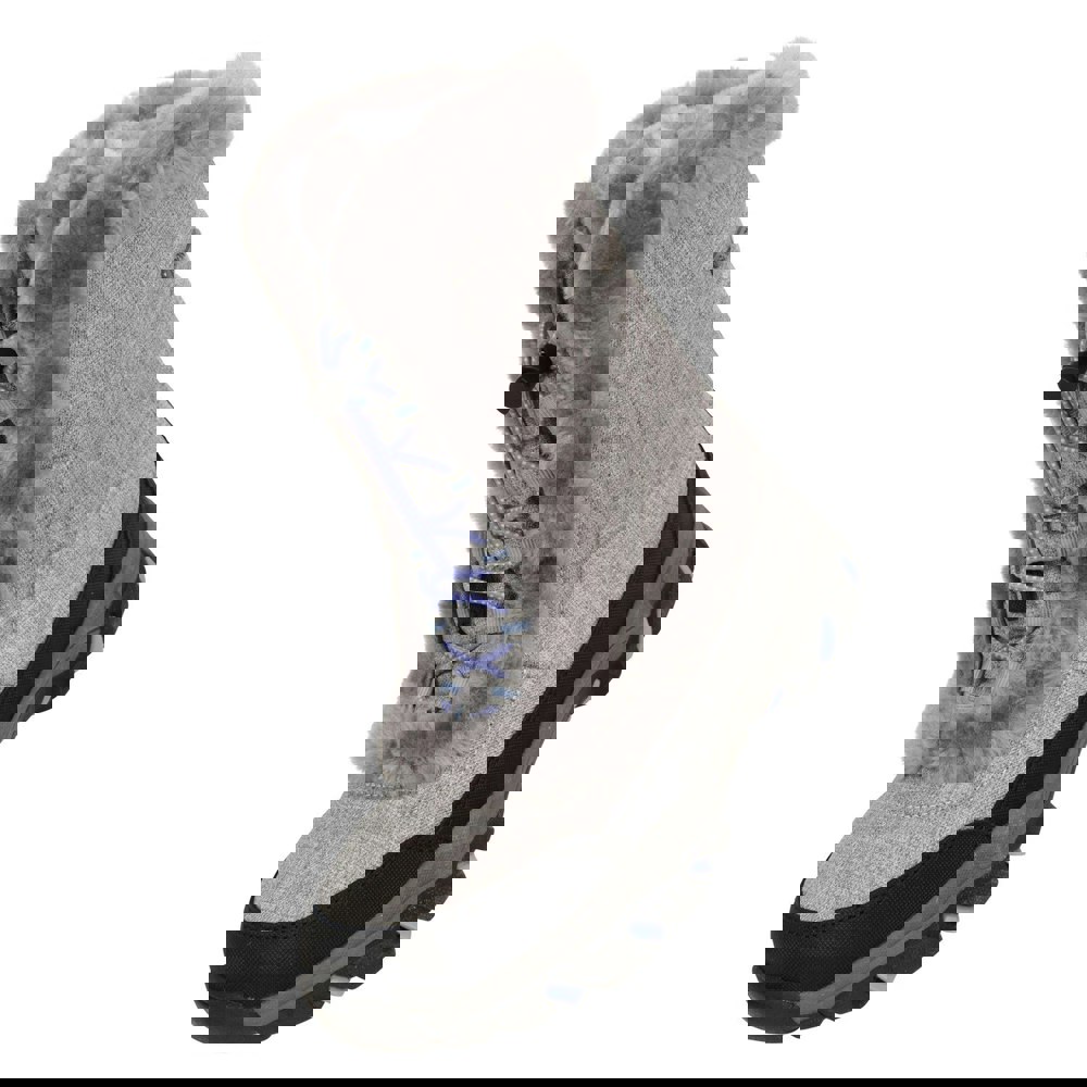These kids’ Ohio snow boots from Mountain Warehouse come in dark grey with contrast detail and a faux fur trim. The upper and lining are made from textile, with a mid-calf cut and a round toe shape. A flat sole keeps the profile simple, while the pull-on construction is finished with a toggle fastening.
