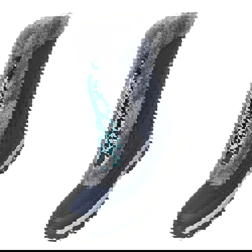 These kids’ Ohio snow boots from Mountain Warehouse come in navy with contrast detail and a faux fur trim. The upper and lining are made from textile, with a durable synthetic TPR outsole for high traction. A DWR finish sits alongside Isotherm fabric technology, with insulating and snowproof properties.