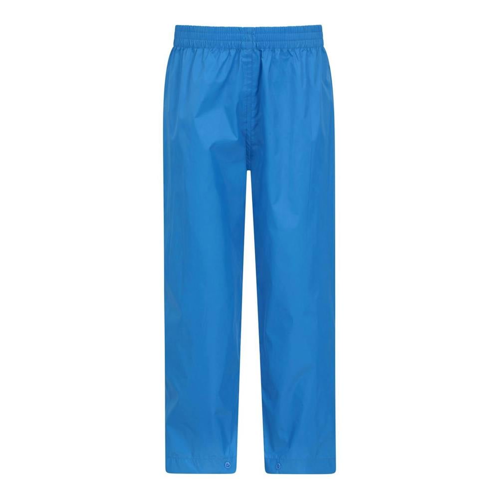 Mountain Warehouse Kids Pakka II Waterproof Over Trousers in cobalt offer a lightweight, waterproof layer with a logo design. IsoDry fabric technology supports breathability and moisture wicking, while taped seams add extra protection. An elasticated waistline helps keep the fit secure, and the popper fastening provides a simple closure.