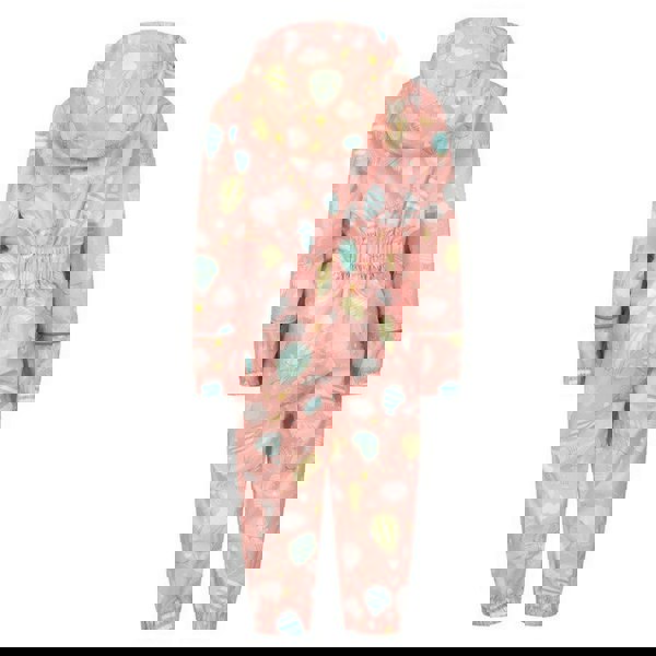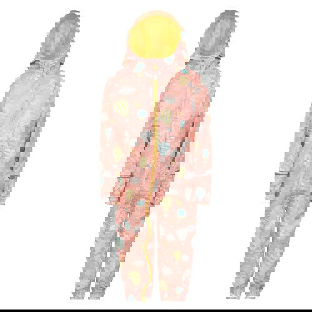 This kids’ rain suit from Mountain Warehouse comes in coral with an all-over print of clouds, hot air balloons, moons and stars. Made from polyester, it has a hooded neckline with an elasticated edge, long sleeves and elasticated cuffs for a secure finish. A full zip fastening runs through the front, with a chin guard for added coverage at the top of the zip.