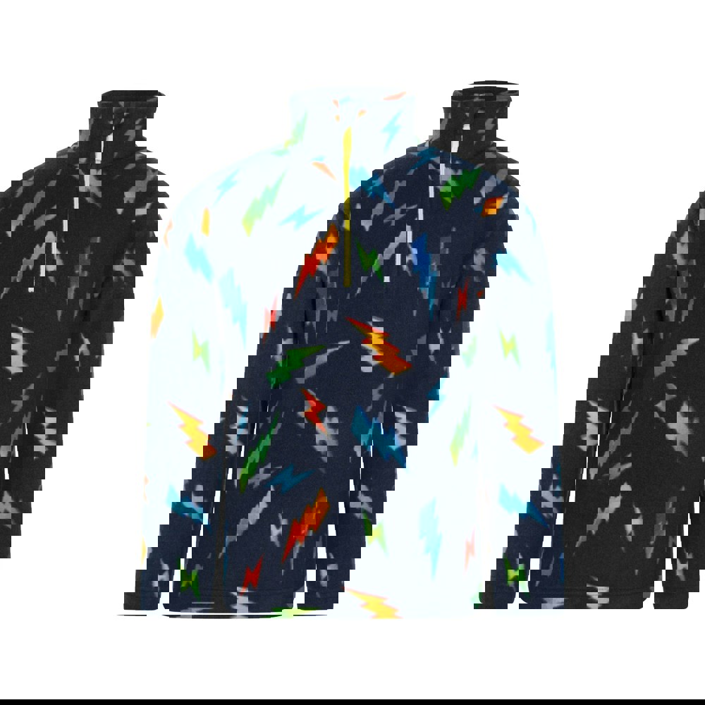 This kids’ Pursuit fleece from Mountain Warehouse is made from microfleece, with a microfleece lining. The outer is 100% polyester and the lining is 100% fleece. A printed design adds detail, while the long sleeves and zip neck create a practical shape for everyday wear.