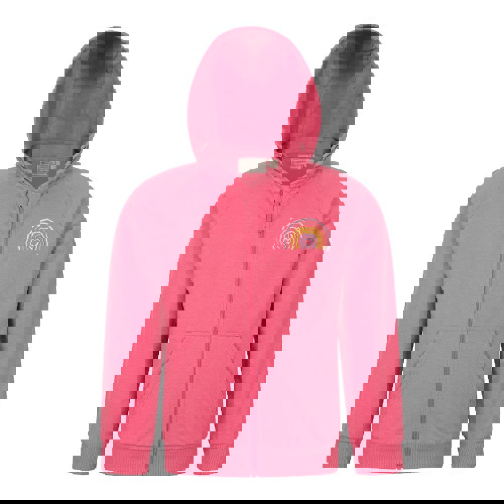 The design combines embroidered and printed details, including a heart, logo and rainbow. Elasticated cuffs and an elasticated hem create a neat outline, while two side pockets add practical storage.