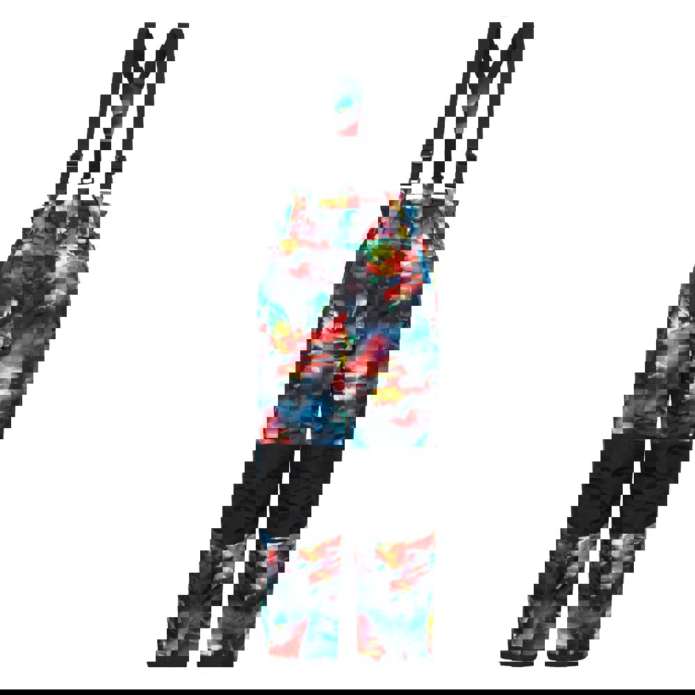 Mountain Warehouse Kids Raptor ski trousers in red, made from 100% polyester with a double layered fabric construction. The waistline is part elasticated and the trousers fasten with a stud and zip fly. Adjustable braces are included and can be detached.