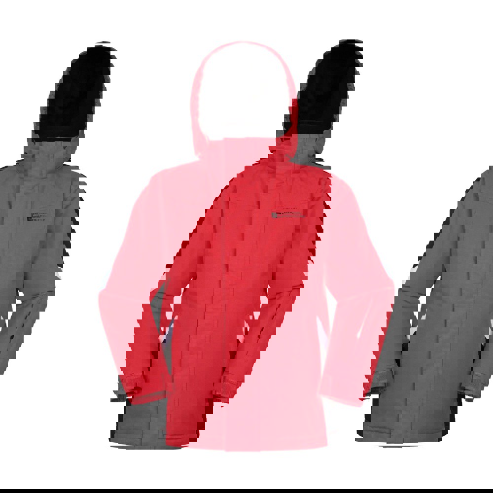 This kids’ Raptor snow ski jacket from Mountain Warehouse comes in red with contrast detailing and a logo. Made from 100% polyester with a fleece lining, it has a DWR finish and a hardwearing, snowproof fabric technology. The jacket is hooded with a grown on hood and long sleeves for added coverage.