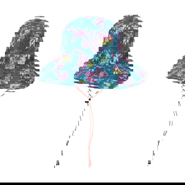 This kids sun hat comes in teal with a reversible finish and a mix of animal print, floral and plain designs. The outer is made from 100% polyester, with a 100% polyamide lining. A water resistant fabric technology and a UPF 50+ sun rating are included.
