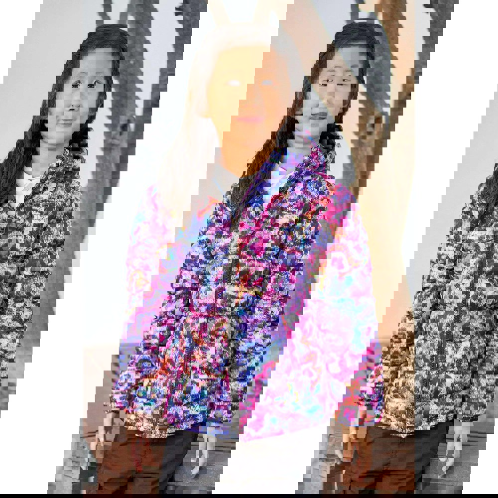This kids padded jacket from Mountain Warehouse comes in bright orange with a watercolour print and logo detail. The quilted outer is finished with a DWR coating and a water-resistant construction, with a lightweight, insulating build for everyday wear.