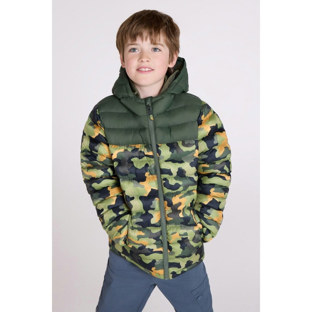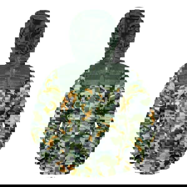This kids padded jacket comes in dark khaki with a quilted finish and watercolour logo design. It has a hooded neckline with a grown on hood, long sleeves and elasticated cuffs. A full zip fastening runs through the front, with two side pockets for small essentials.