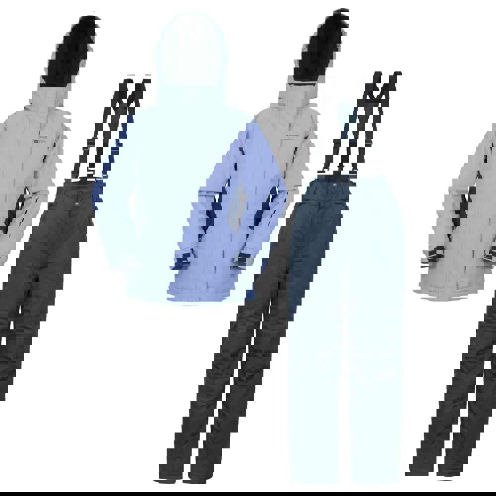 This kids’ ski jacket and trousers set comes in lilac with a printed design. Made from 100% polyester with a fleece lining, it includes a sew-on hood and elasticated cuffs with a touch fastening tab. The jacket and trousers fasten with a combination of button, full zip and snap closure.