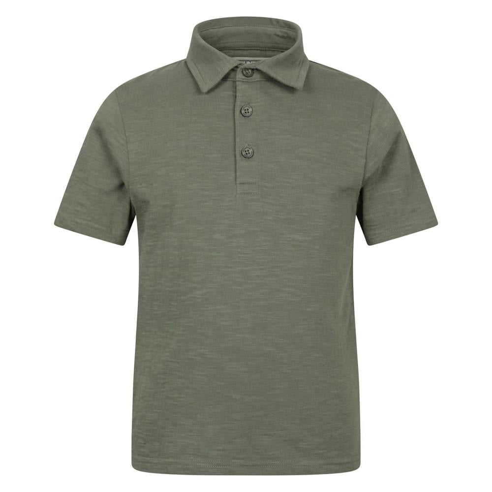 This kids’ slub polo shirt from Mountain Warehouse comes in green with a plain finish. Made from 100% cotton, it has a short-sleeved cut and a turn down collar for a classic polo shape. A 3 button placket completes the front.