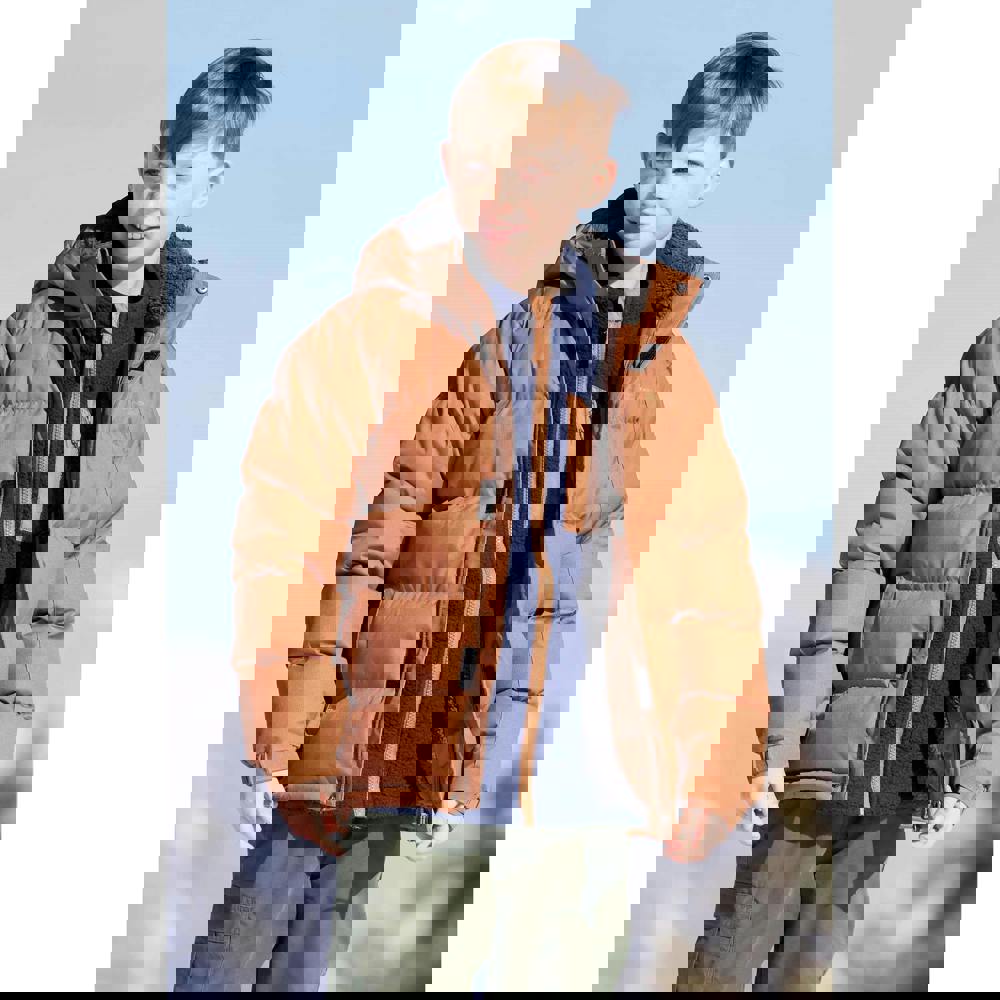 This kids’ padded jacket from Mountain Warehouse comes in tan with a plain, quilted finish and logo detail. Made from 100% polyester, it includes a soft borg lining and a hooded neckline with a sew-on hood. Long sleeves and touch fastening tabs at the cuffs provide an adjustable finish, while the front zip and touch fastening closure keep the front secure.