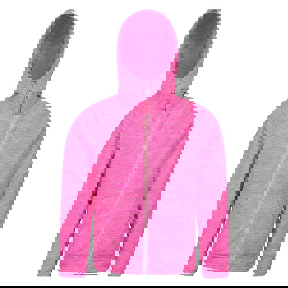 A hooded neckline and long sleeves provide classic coverage, while the full-length contrast zip creates a clean, practical front. Two kangaroo pockets complete the design, alongside contrast detailing for a bold finish in bright pink.