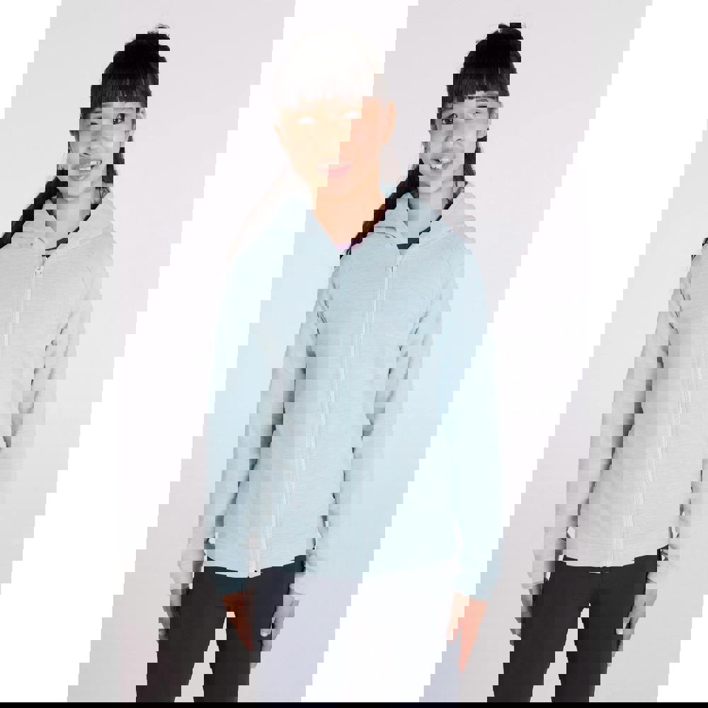 This kids Strath melange hoodie from Mountain Warehouse comes in mint with a printed logo design. It has a hooded neckline with a sew-on hood and drawstring detail, plus long sleeves finished with fitted cuffs.