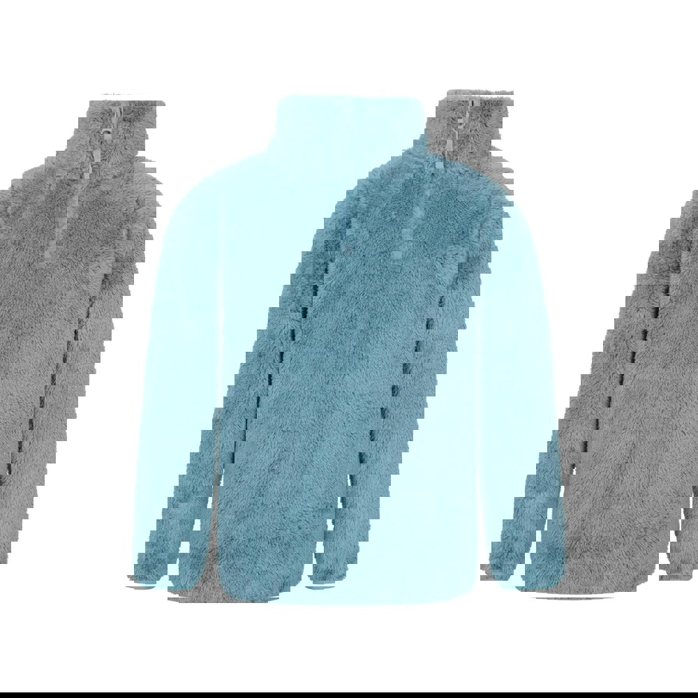 This kids’ teddy fleece top from Mountain Warehouse comes in teal with a plain finish and a fluffy fabric texture. Made from 100% polyester, it uses breathable, lightweight fabric technology for comfortable wear. A high-neck shape and long sleeves provide added coverage, while the half zip fastening allows easy pull-on dressing and adjustable ventilation.