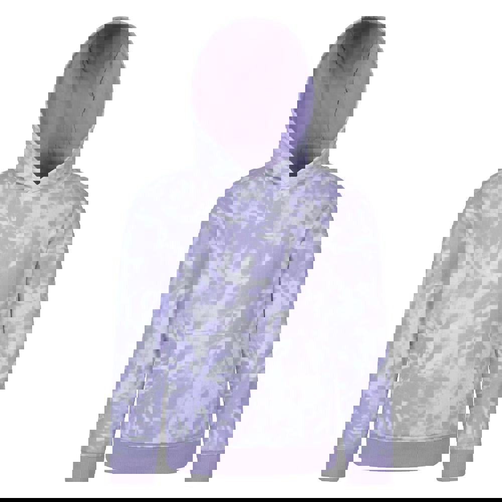 This kids’ hoodie is made from organic cotton with added elastane and finished in a purple tie dye design. It has a hooded neckline with a sew-on hood and a pull over fastening for a simple, casual shape. Long sleeves are paired with fitted, ribbed cuffs, and the hem is also fitted and ribbed for a neat outline.