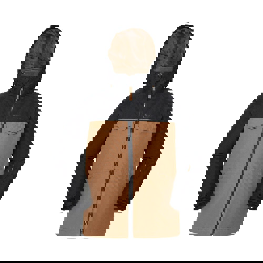 Fabric technology includes a PFC free, water resistant and waterproof construction, with a 3000mm waterproof rating. Storage is arranged across multiple pockets, including side, chest and sleeve options, with zip and flap closures.