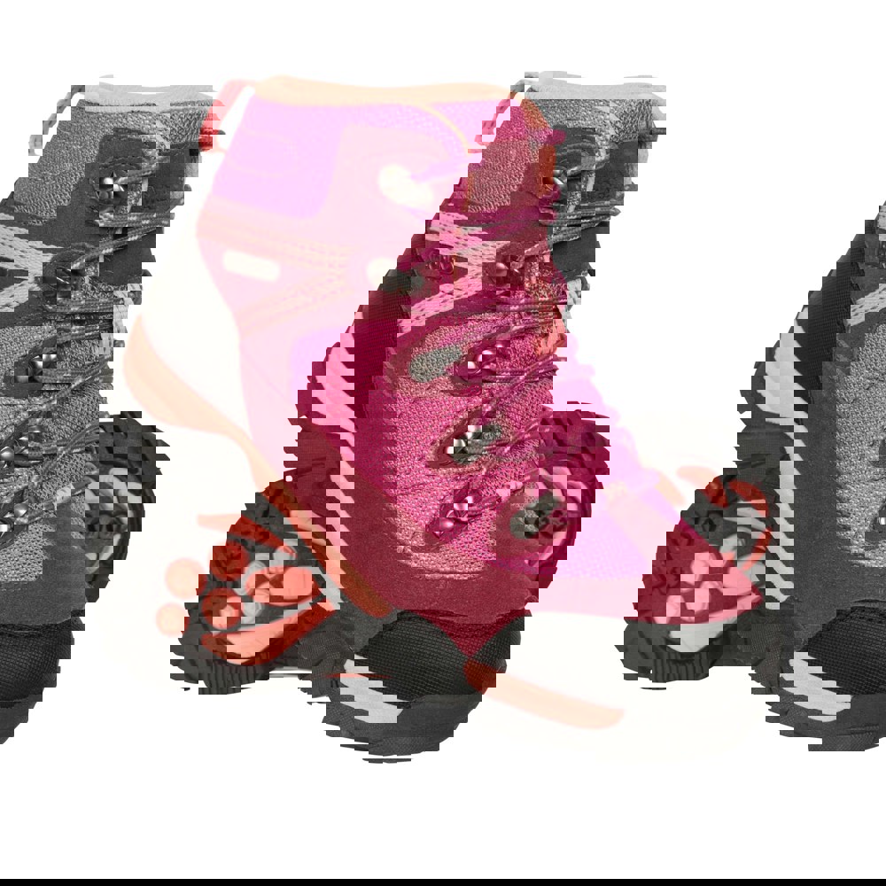 These kids’ trail walking boots from Mountain Warehouse combine a ripstop and suede upper with a contrast mesh lining. A waterproof membrane sits alongside water resistant, durable fabric technology for added protection in wet conditions. The mid cut shape is finished with a padded collar and padded tongue, plus a pull tab for easier handling.