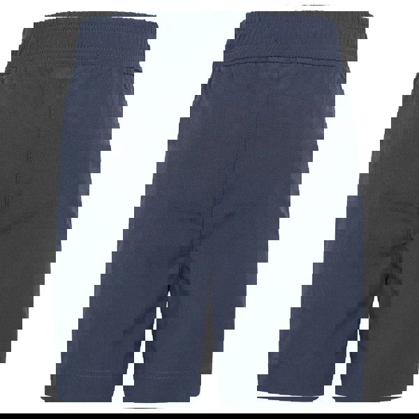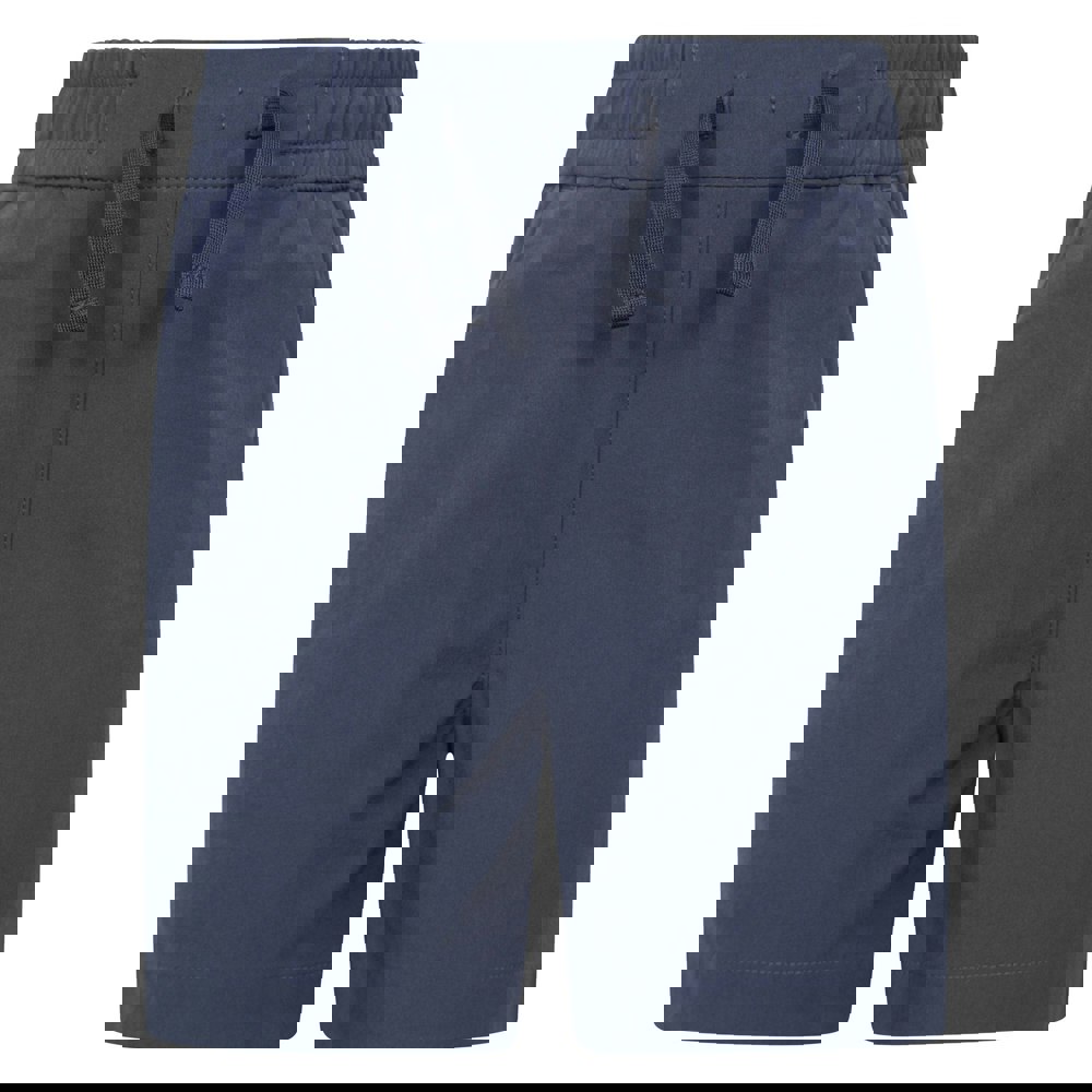 Mountain Warehouse Kids Trek water resistant shorts in navy with a plain finish and logo detail. The fabric blend combines 88% polyamide and 12% elastane, with quick dry and water resistant technology. An adjustable waistband includes an elasticated fit and drawstring fastening. Two side pockets with zip closure provide secure storage.