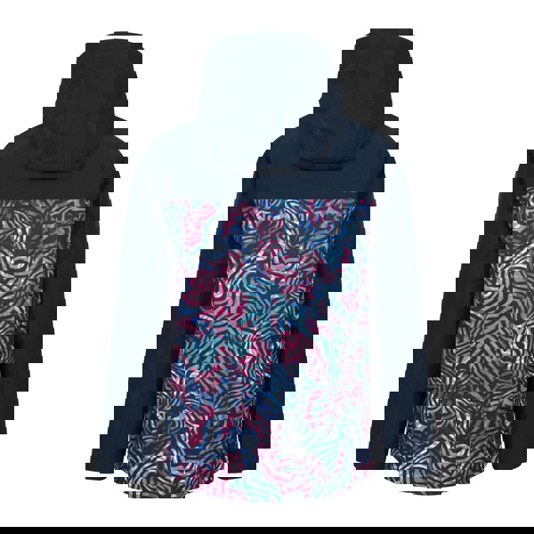 The jacket has long sleeves with elasticated cuffs and touch fastening tabs, plus a fused stand up collar and an adjustable hood. The hood is elasticated and fleece lined. Storage includes 2 side pockets, 1 internal pocket, 1 chest pocket with zip, and 1 sleeve pocket with stud fastening. A full zip fastening completes the jacket, with a snug fit noted.