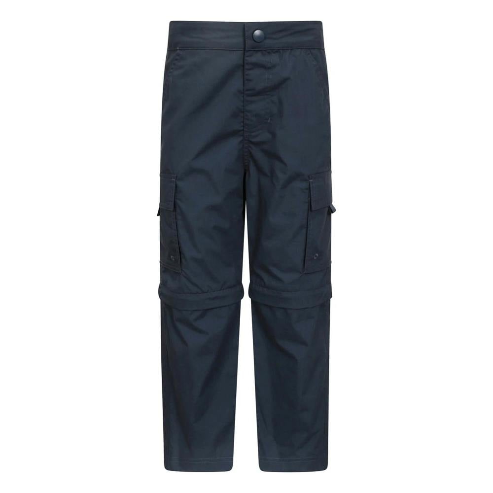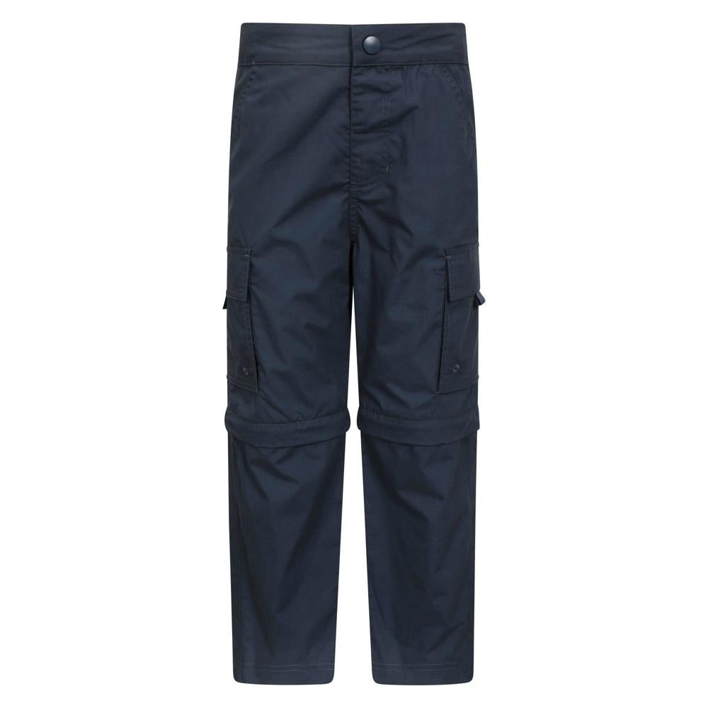 These kids’ active trousers from Mountain Warehouse come in navy with a plain finish and zip-off legs for a convertible design. The outer fabric blends 65% polyester with 35% cotton, with fabric technology listed as breathable, lightweight, soft and quick dry, alongside fade resistant and shrink resistant properties.