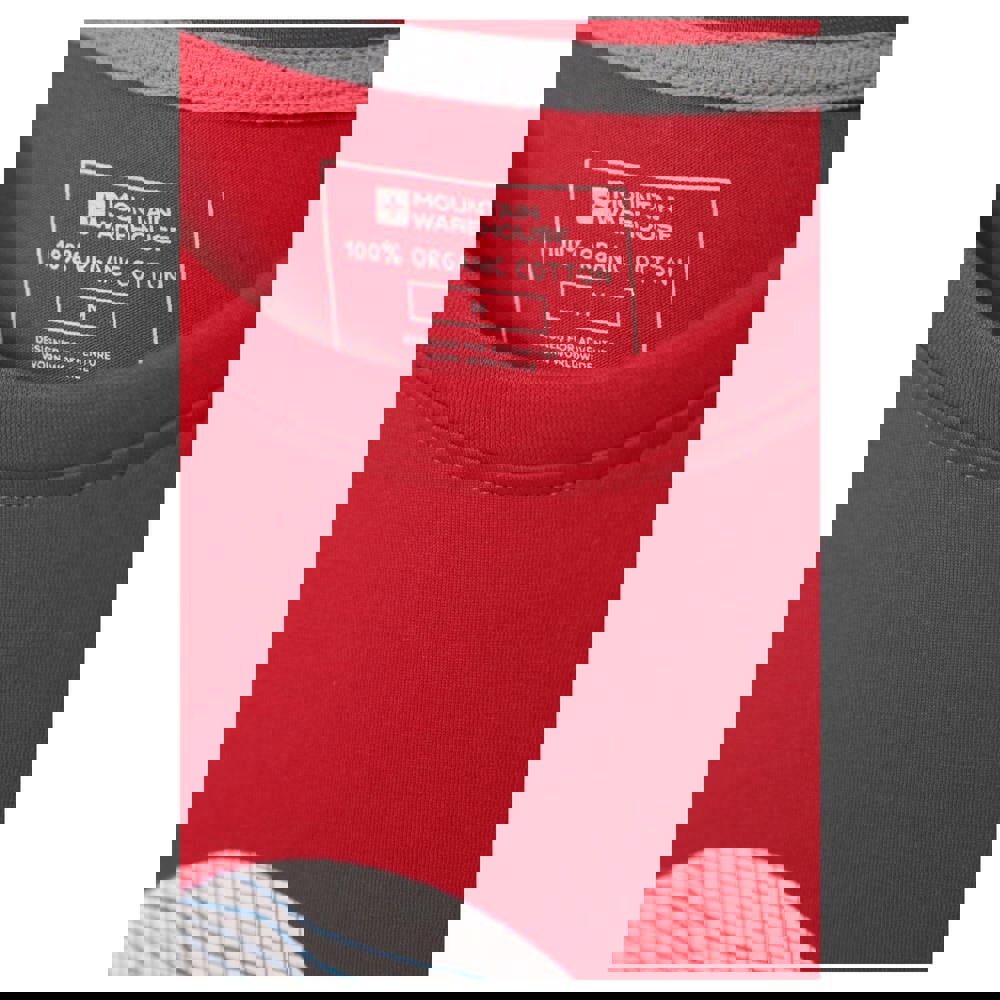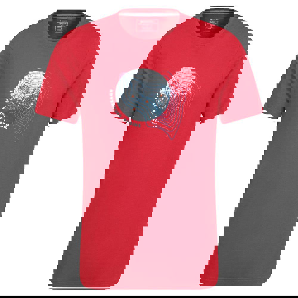 This men’s Adventure Begins T-shirt from Mountain Warehouse is made from 100% organic cotton. It comes in red and has a printed design with mountain and text details. A crew neckline and short sleeves give it a classic T-shirt shape for everyday wear.