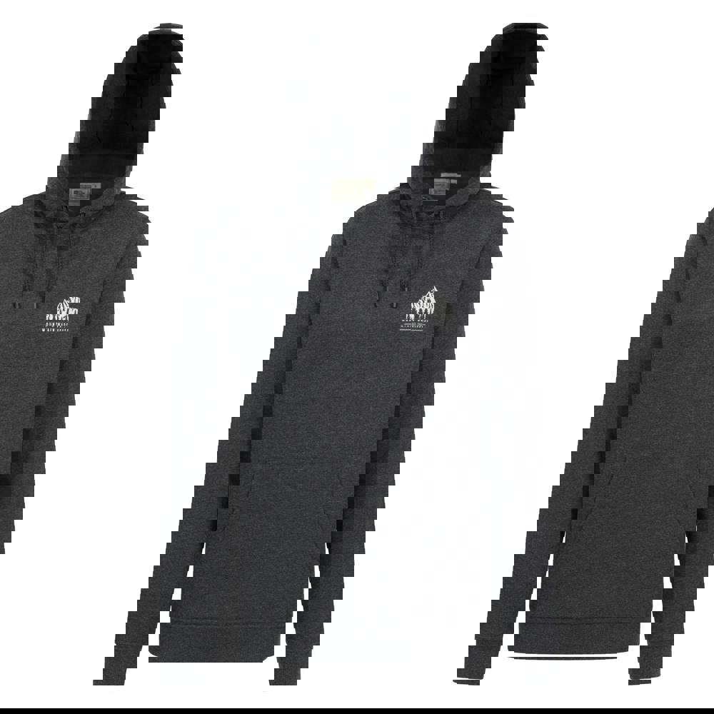This men’s hoodie from Mountain Warehouse comes in charcoal and pulls on for easy wear. It is made from a cotton, elastane and polyester blend, with a soft, lightweight and breathable fabric technology.