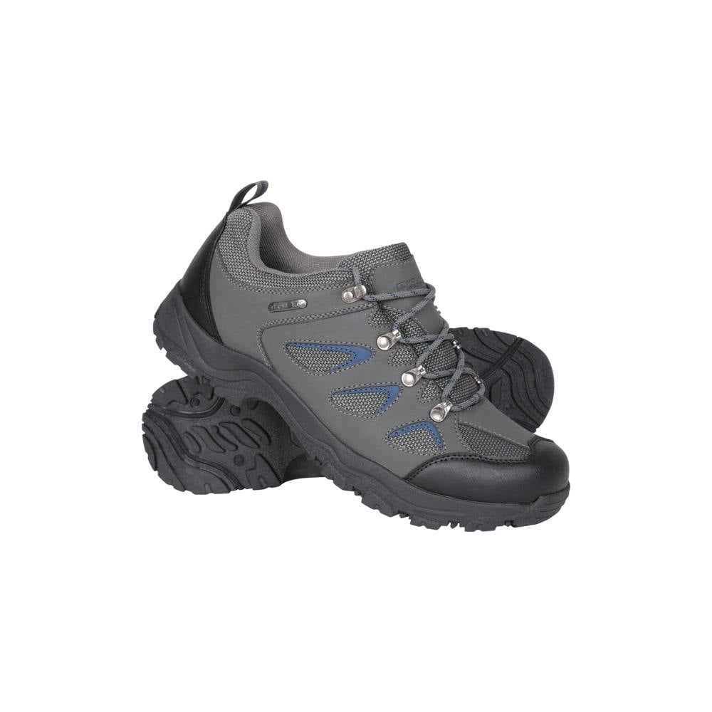 Built for everyday miles and changeable conditions, the Mountain Warehouse Adventure Waterproof Walking Shoes bring a practical, low-cut profile in dark grey. A durable mesh and synthetic upper is paired with a mesh and textile lining, while a padded collar and padded tongue add a secure, supportive feel around the ankle. Lace-up fastening with a loop and a pull tab make them easy to get on and adjust.