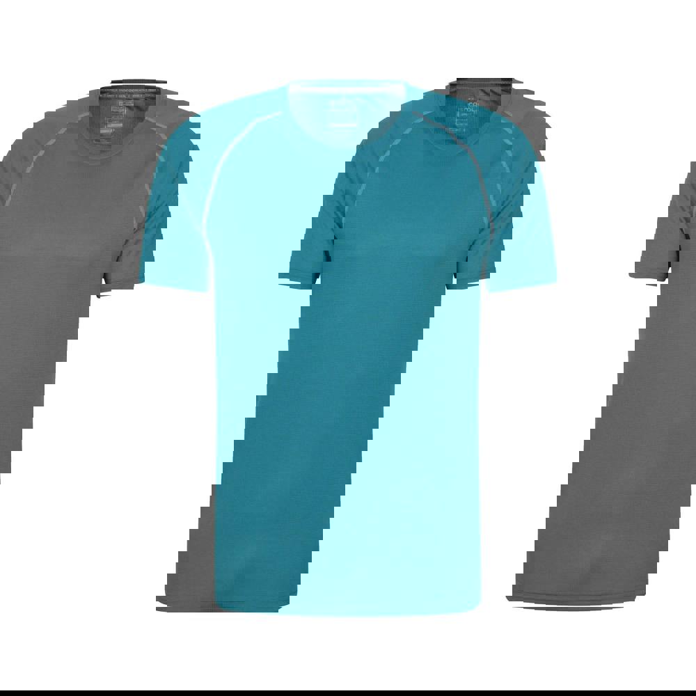 Mountain Warehouse Aero II IsoCool T-Shirt in petrol is made from 100% polyester with a plain finish and logo detail. It is cut in a relaxed fit and styled with a crew neckline for a clean, easy-to-wear look.
